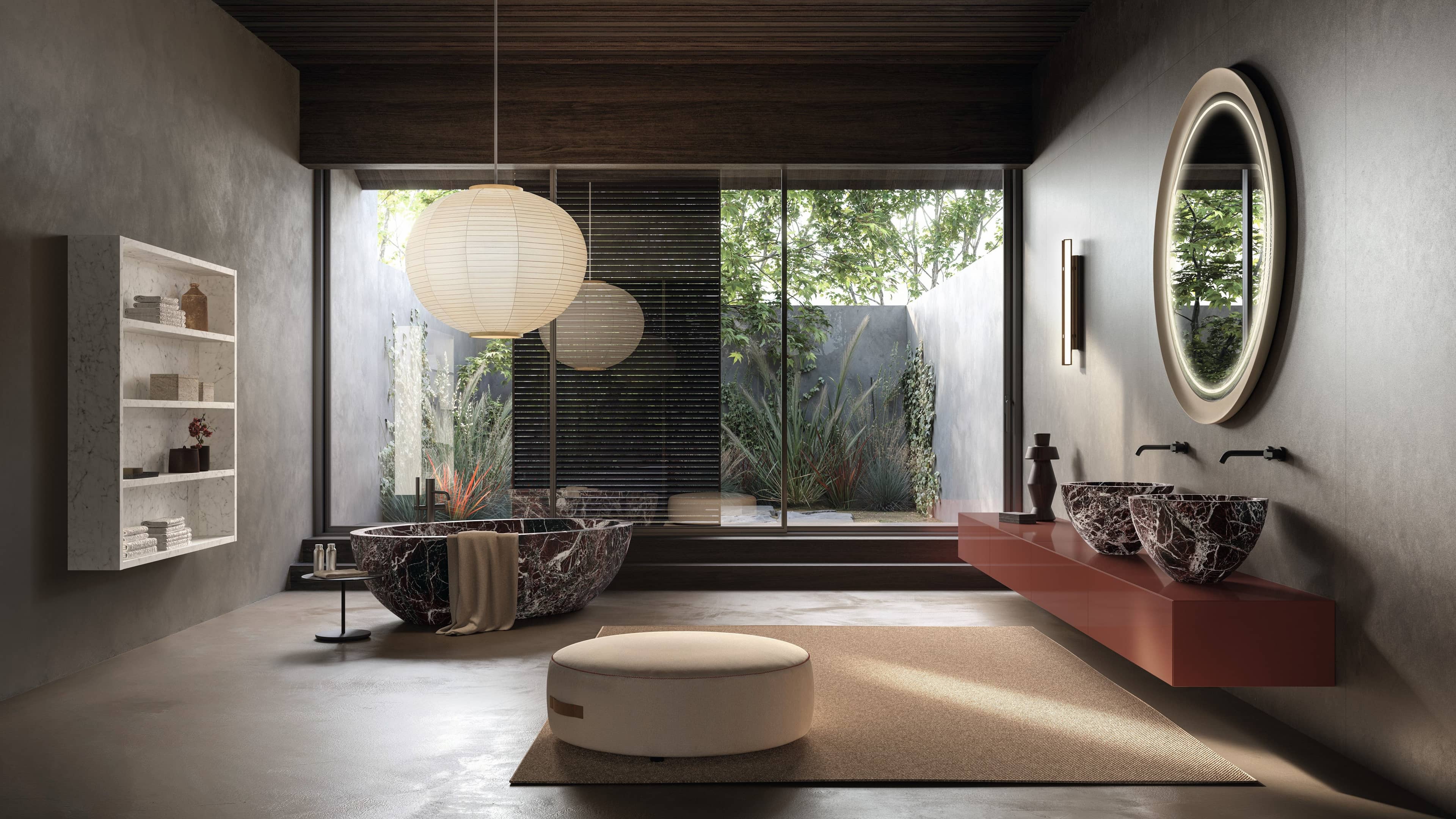 Designed by Claudio Silvestrin, the I Fiumi ST collection is maded up of monobloc or complete composition solutions which feature a vanity unit with single drawer and open-faced compartment. It is compatible with top-mounted, built-in, under-mounted and moulded flush-mounted washbasins.