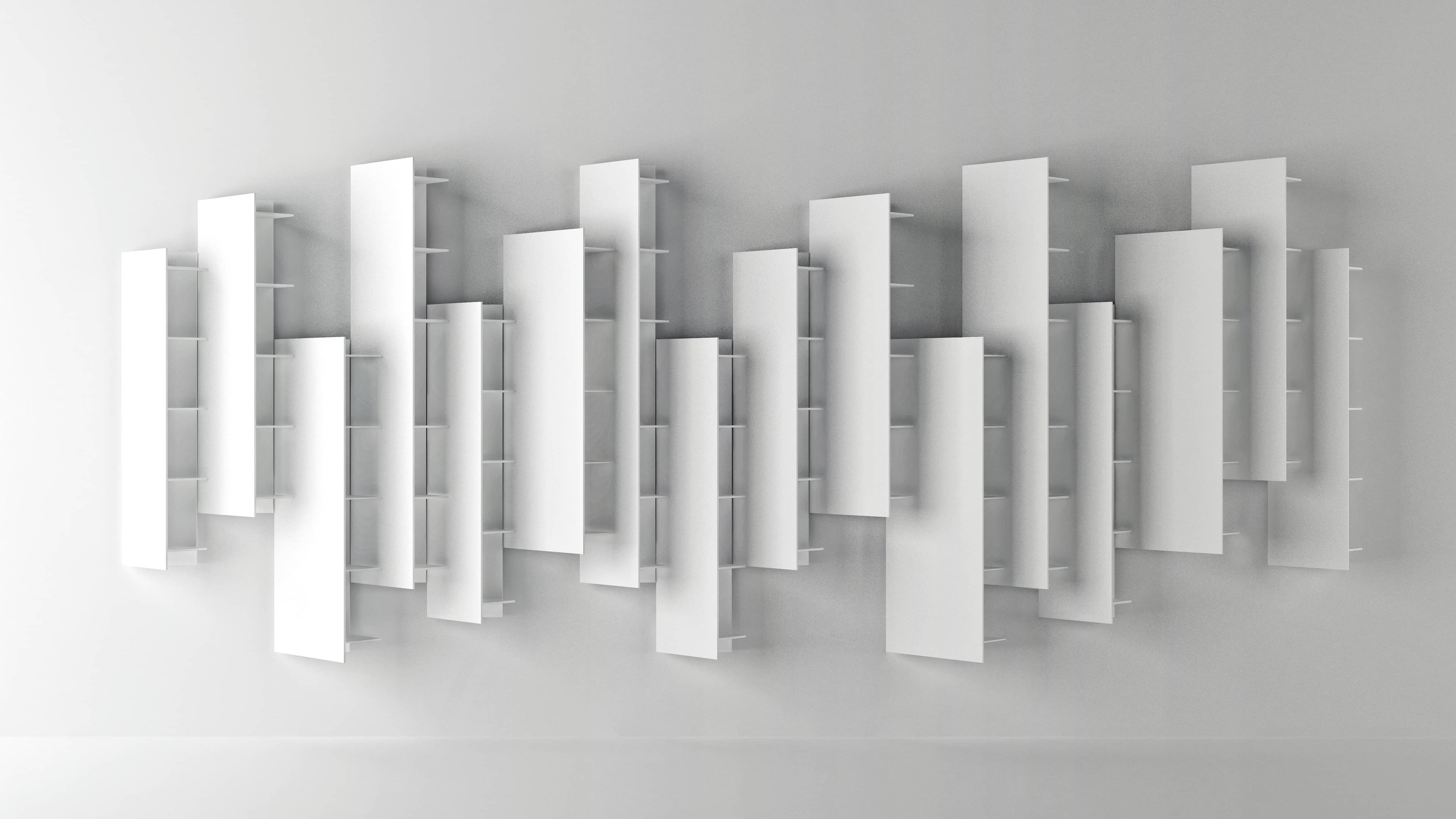 Inspired by city skylines, CT Line is composed of wall modular units characterized by peculiar combinations where the shelves can be partially hidden by the oblique front side. The unique structure forms a series of staggered floors, creating a fascinating urban setting Design Victor Vasilev.