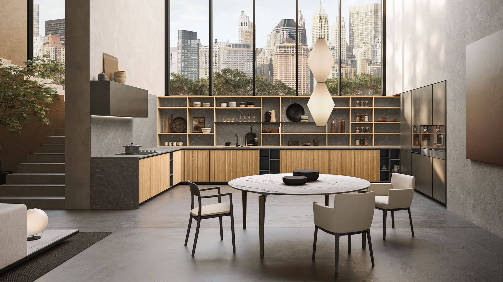 Xila is a modular kitchen system designed by Luigi Massoni in 1972, an Italian design masterpiece recognized as the first handle-free kitchen. Over the years Xila has been updated with new materials, including painted frosted glass and aluminium - always becoming more sophisticated and textured.