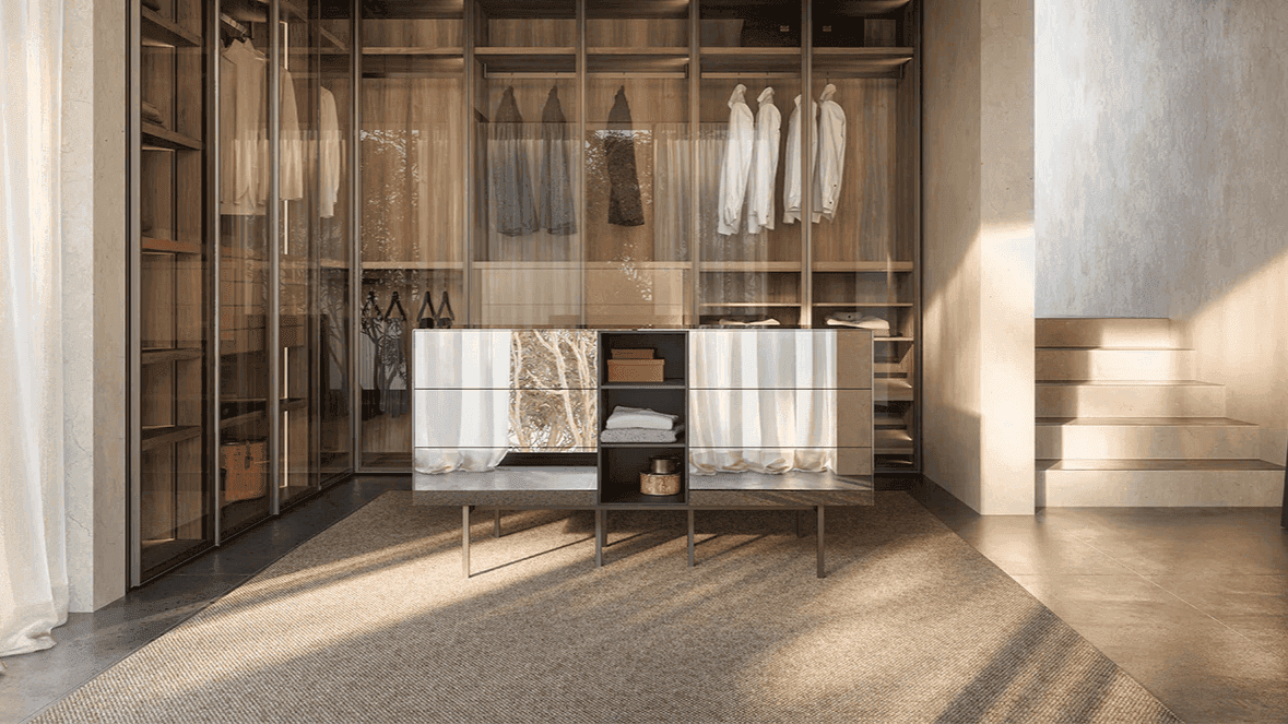 The freestanding chest of drawers is the jewel of every modern walk-in wardrobe. Designed to provide optimal space organisation, the unit is available as a single-sided or double-sided chest of drawers, perfectly adapting to the requirements of any space or style.
